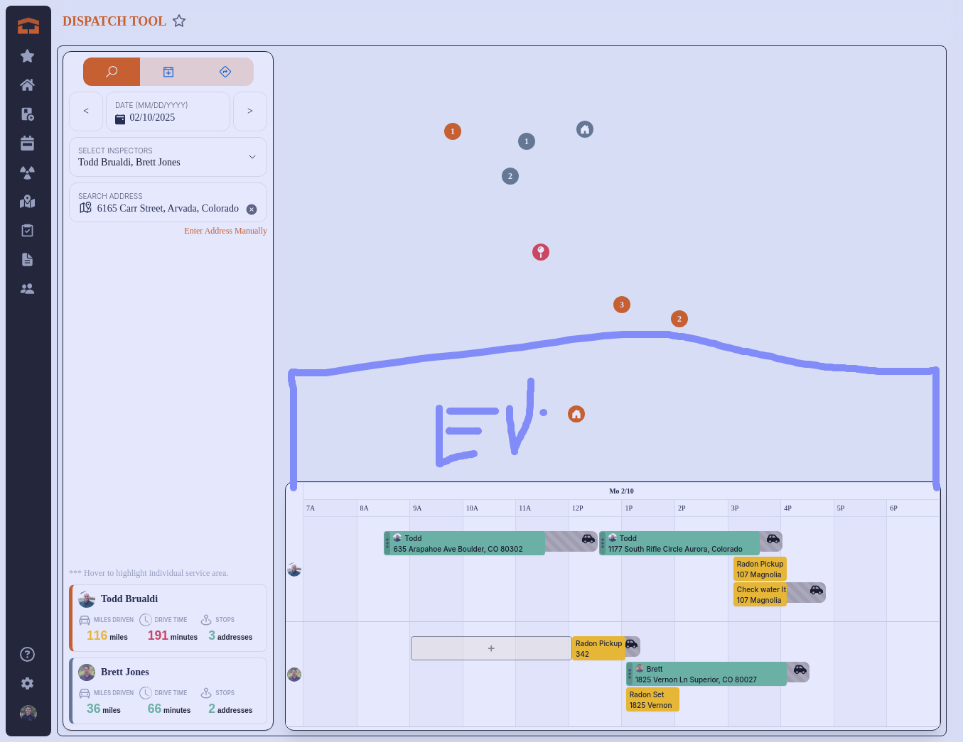 Drag unconfirmed events onto the calendar and have the map update in real time.